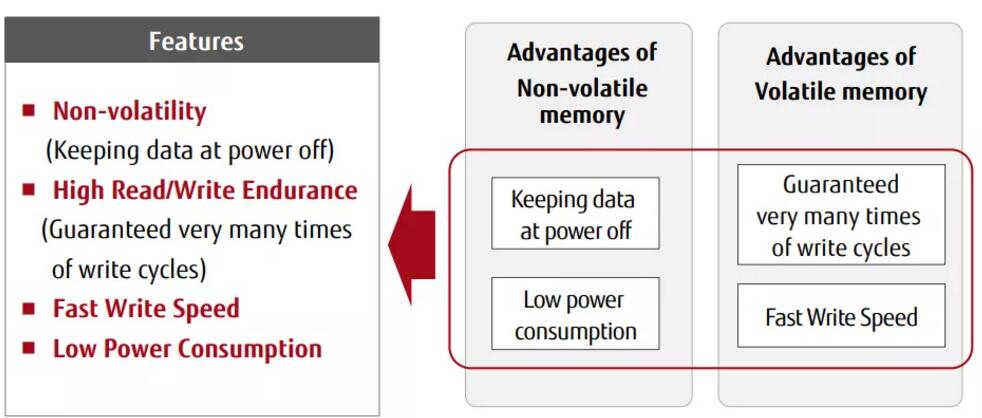 獨特性能成就技術“硬核”,FRAM是存儲界的實力派。除非易失性以外,FRAM還具備三大主要優勢:高讀寫入耐久性、高速寫入以及低功耗,這是絕大多數同類型存儲器無法比擬的。